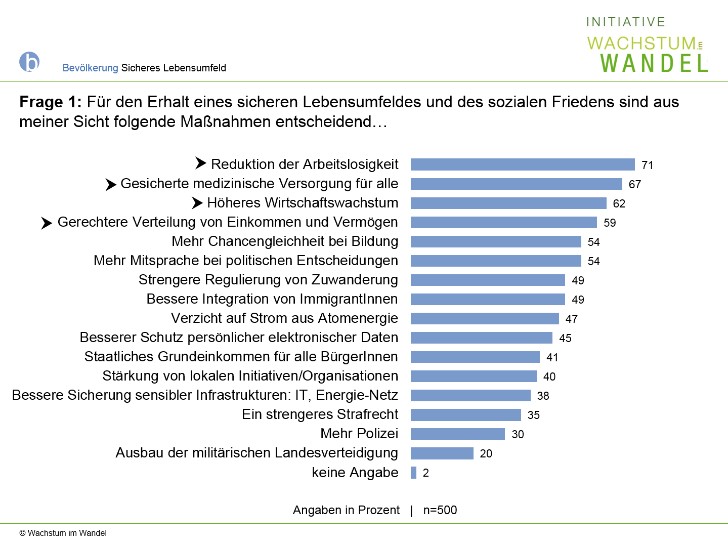 Frage 1: Für den Erhalt eines sicheren Lebensumfeldes und des sozialen Friedens sind aus meiner Sicht folgende Maßnahmen entscheidend…