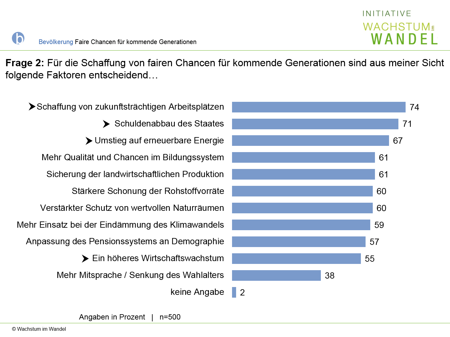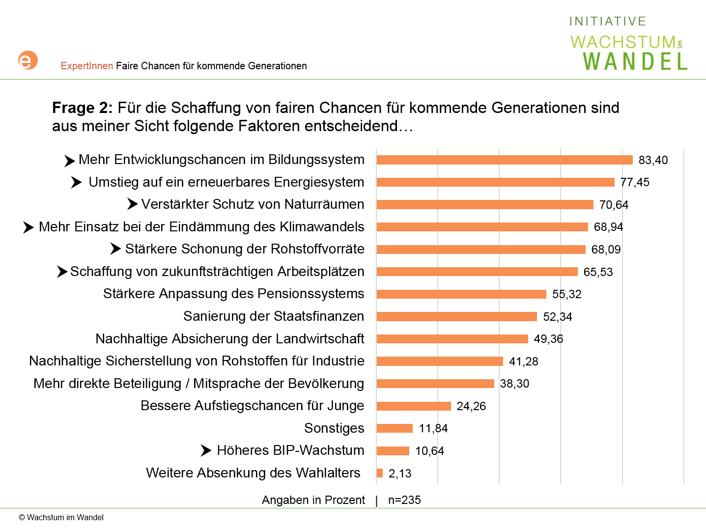 Frage 2: Für die Schaffung von fairen Chancen für kommende Generationen sind aus meiner Sicht folgende Faktoren entscheidend…